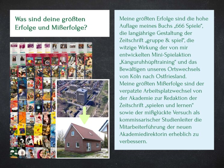 - Autor der "Spiele zum Sofortspielen", (1982 - 2024 als Beilage in der Zeitschrift "gruppe & spiel", ab Herbst 2024 im Online-Magazin "IdeenKISTE")