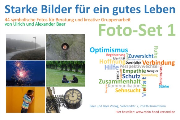 Alex und ich produzieren weiter unsere in Beratung und kreativer Gruppenarbeit beliebten Foto-Sets, die weiterhin exklusiv vom www.robin-hood-versand.de vertrieben werden. Besonders beliebt sind die Fotos mit passenden Kennenlernfragen "Der Mops fragt" und die zwei Foto-Sets "Starke Bilder für ein gutes Leben", Set 1 und 2. Diese metaphorischen Bildkarten-Sets werden wir auch noch weiter ausbauen. Drei Sets mit je 44 Fotos sind 2019 erschienen: "Menschenskinder!" (Einzelpersonen, Paare, Gruppen). Alle Infos zu den verschiedenen Foto-Sets: Baer und Baer Verlag.